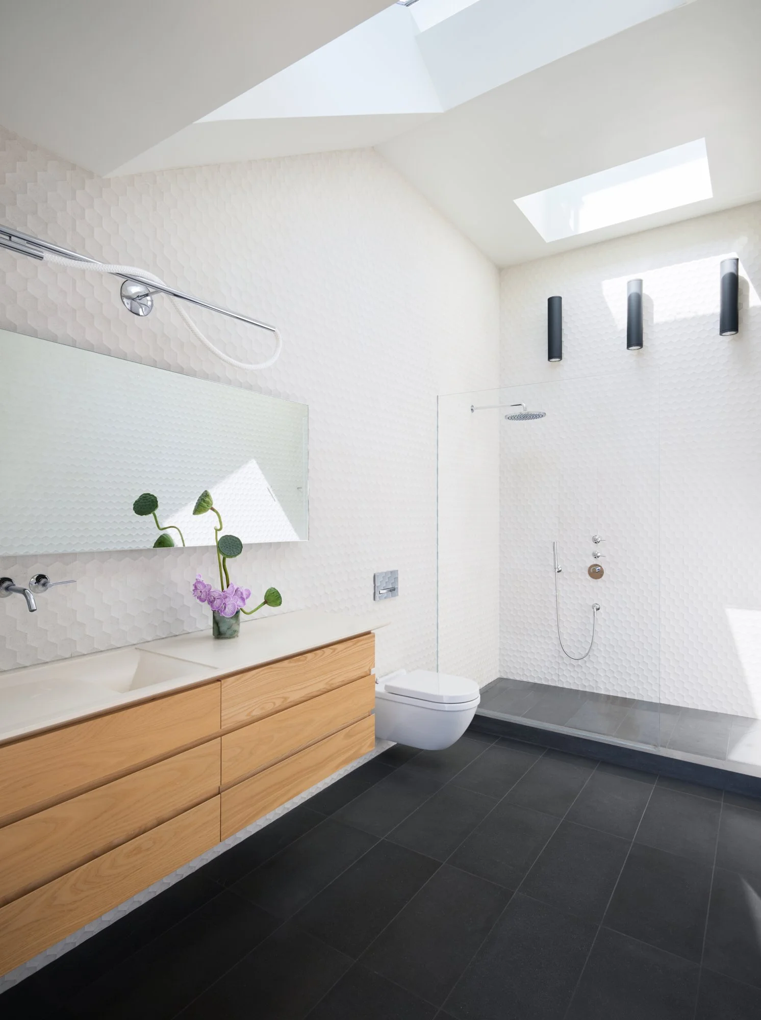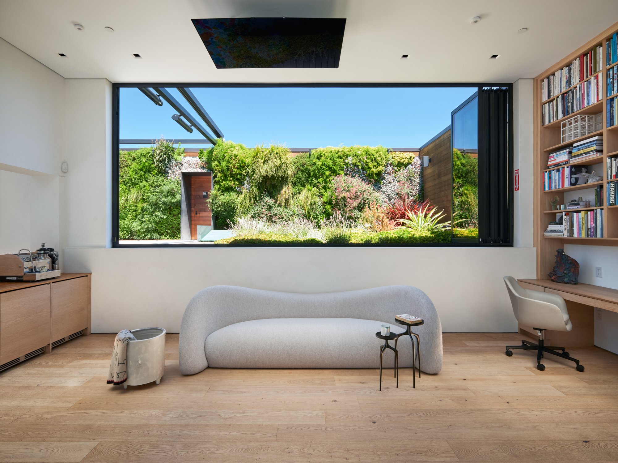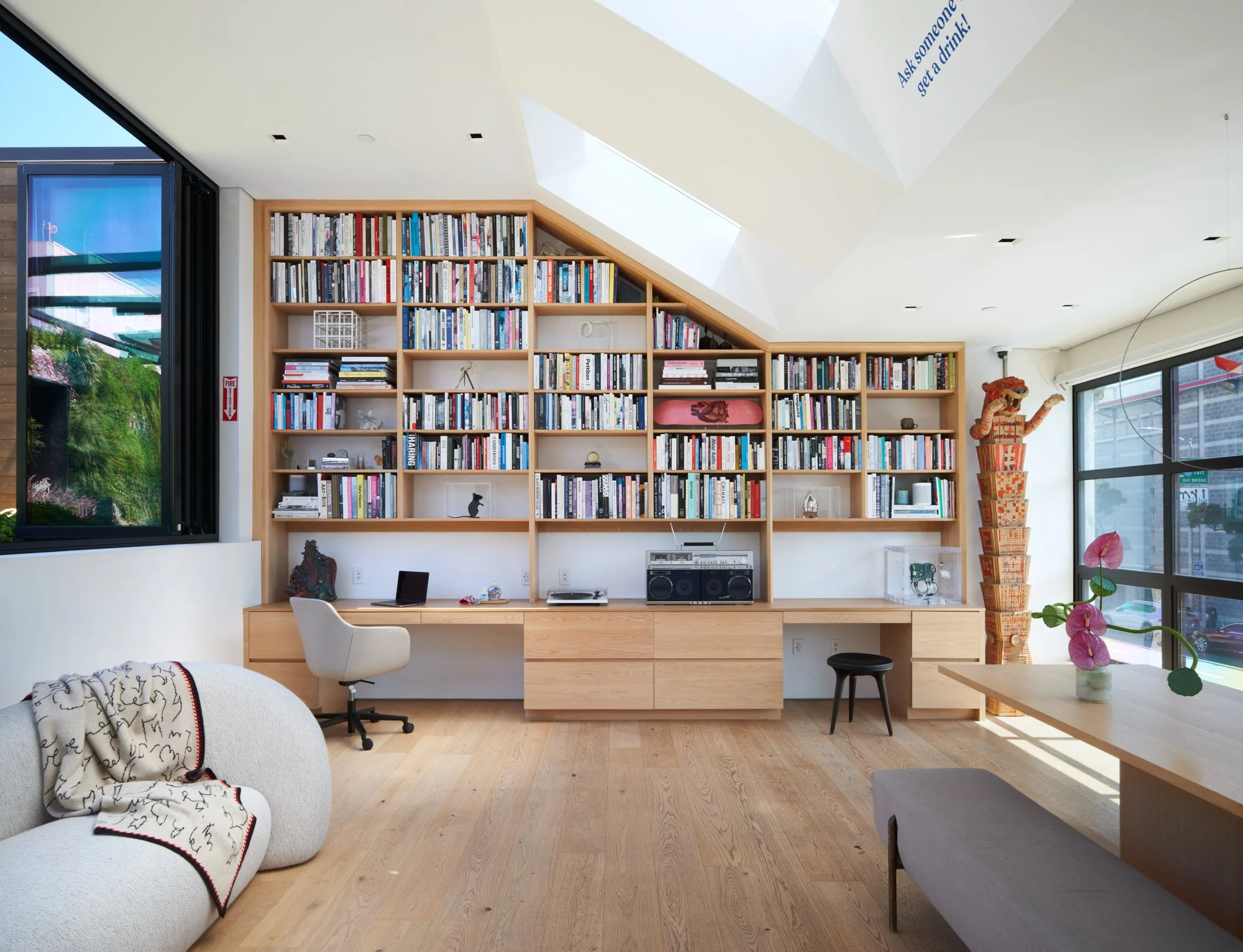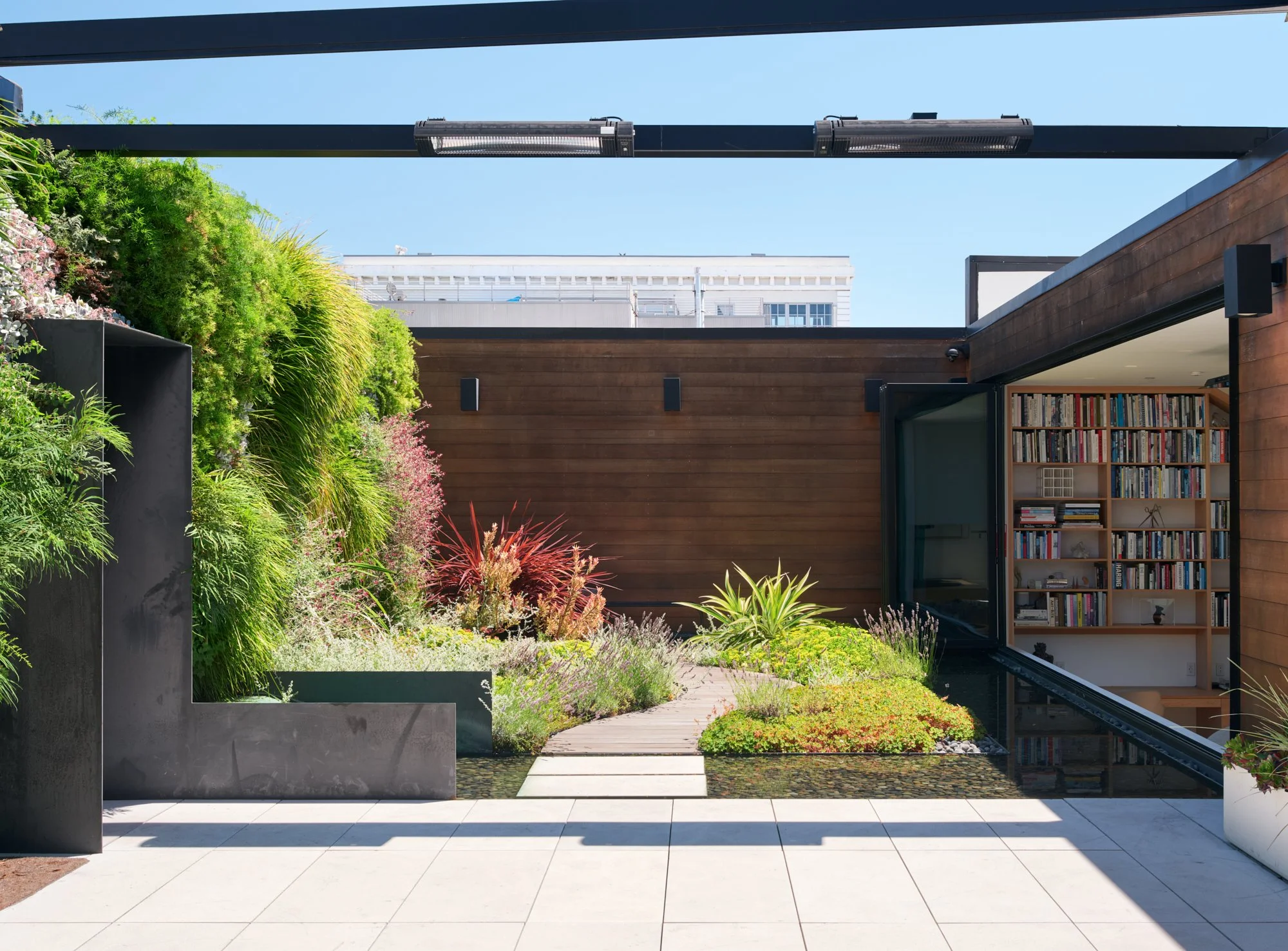 The library and lounge (ideal for smaller gatherings or creative brainstorms) opens up to the outdoor roof deck — which means sky’s the limit for how to utilize the extra space.