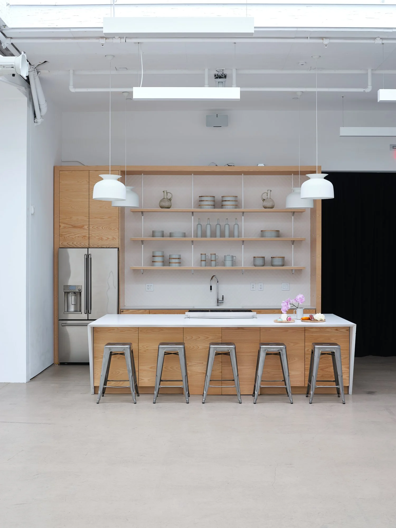 An open-floor studio with a chef’s kitchen versatile for any occasion — from gallery shows to photoshoots, intimate dinners to large events. It’s a blank space for imagination.